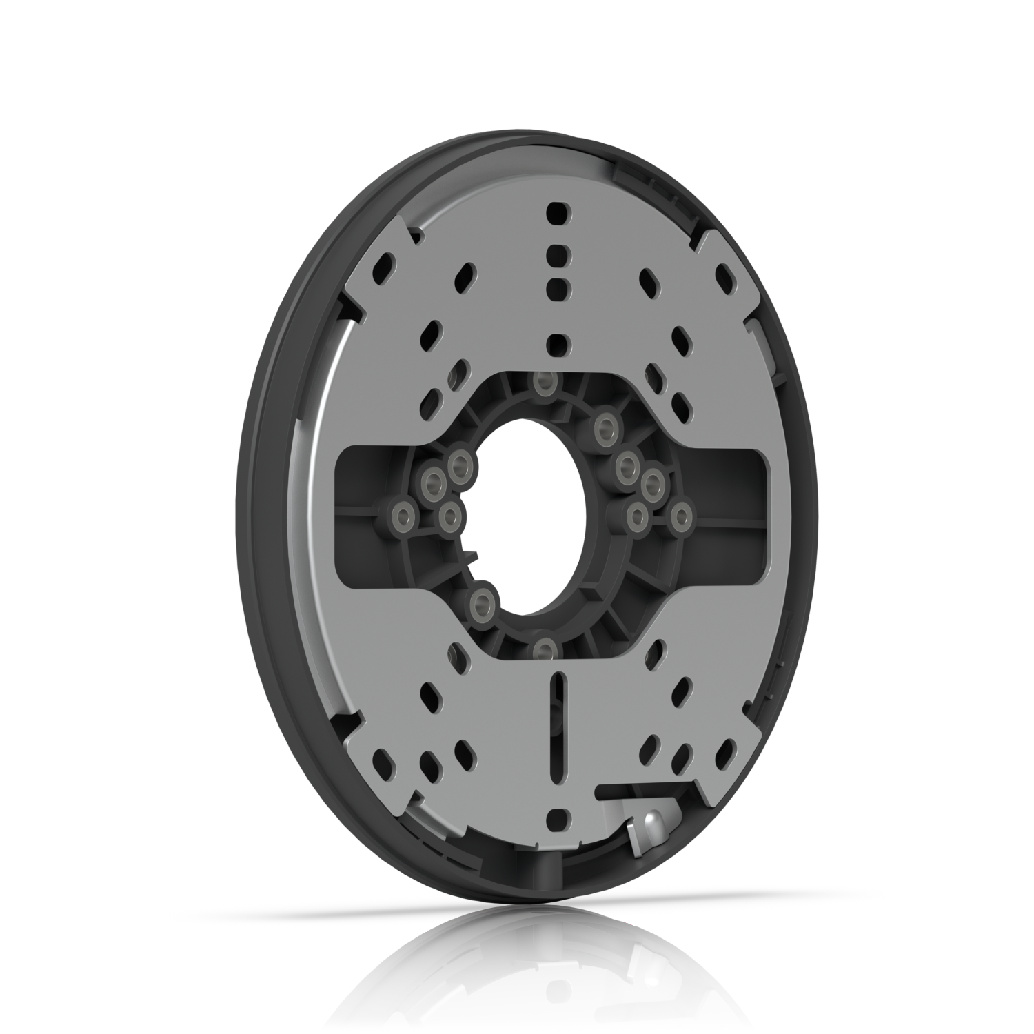 A mounting plate designed to interface UniFi Protect cameras with multiple types of Gang Boxes and Junction Boxes.
