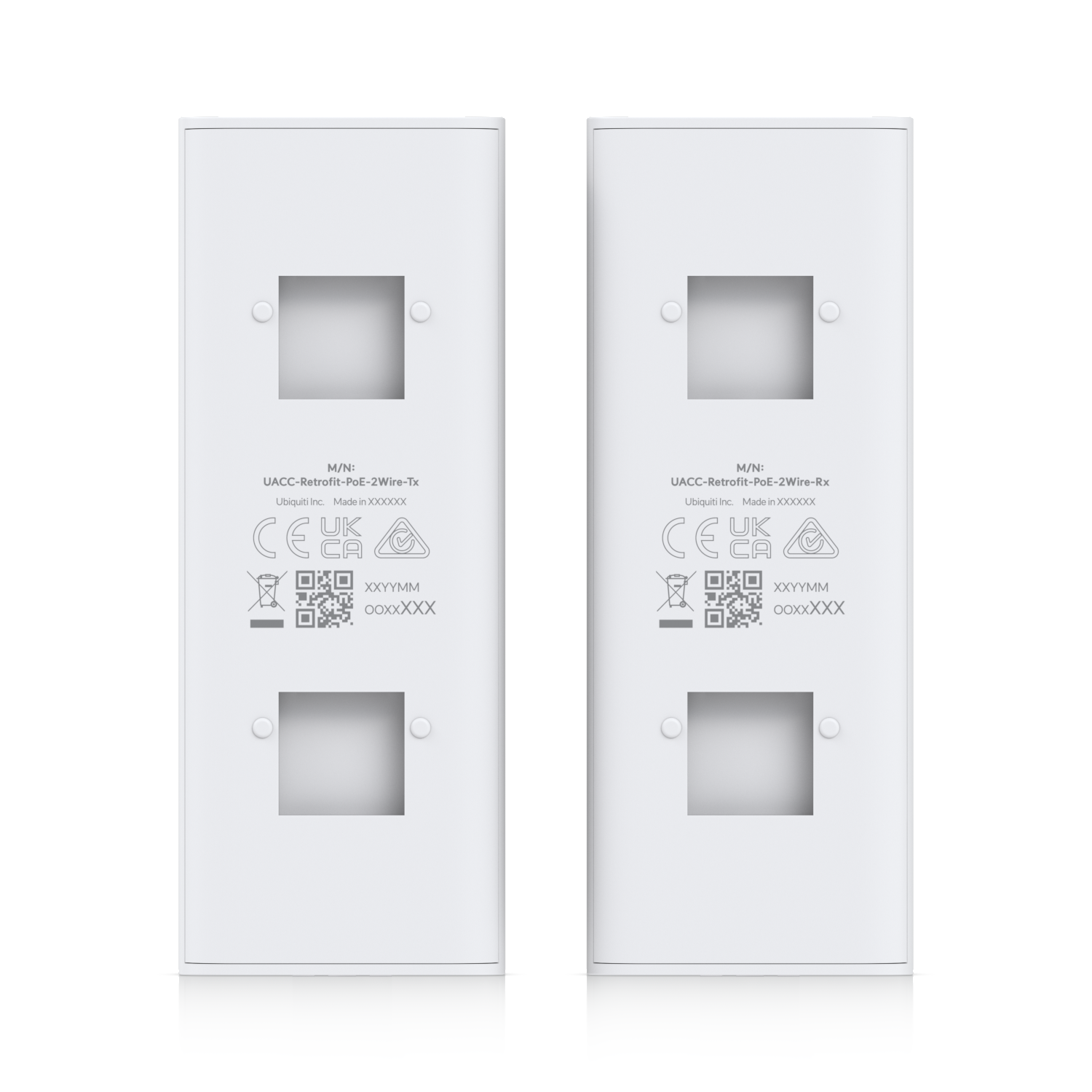 The Ubiquiti UniFi UACC-Retrofit-PoE-2Wire allows you to transfer data and power using 2-wire twisted pair or coaxial cables. This kit includes wall mountable transmitter and receiver modules that link to your network devices through 10/100 Mb/s Ethernet ports. Below are its technical specifications: